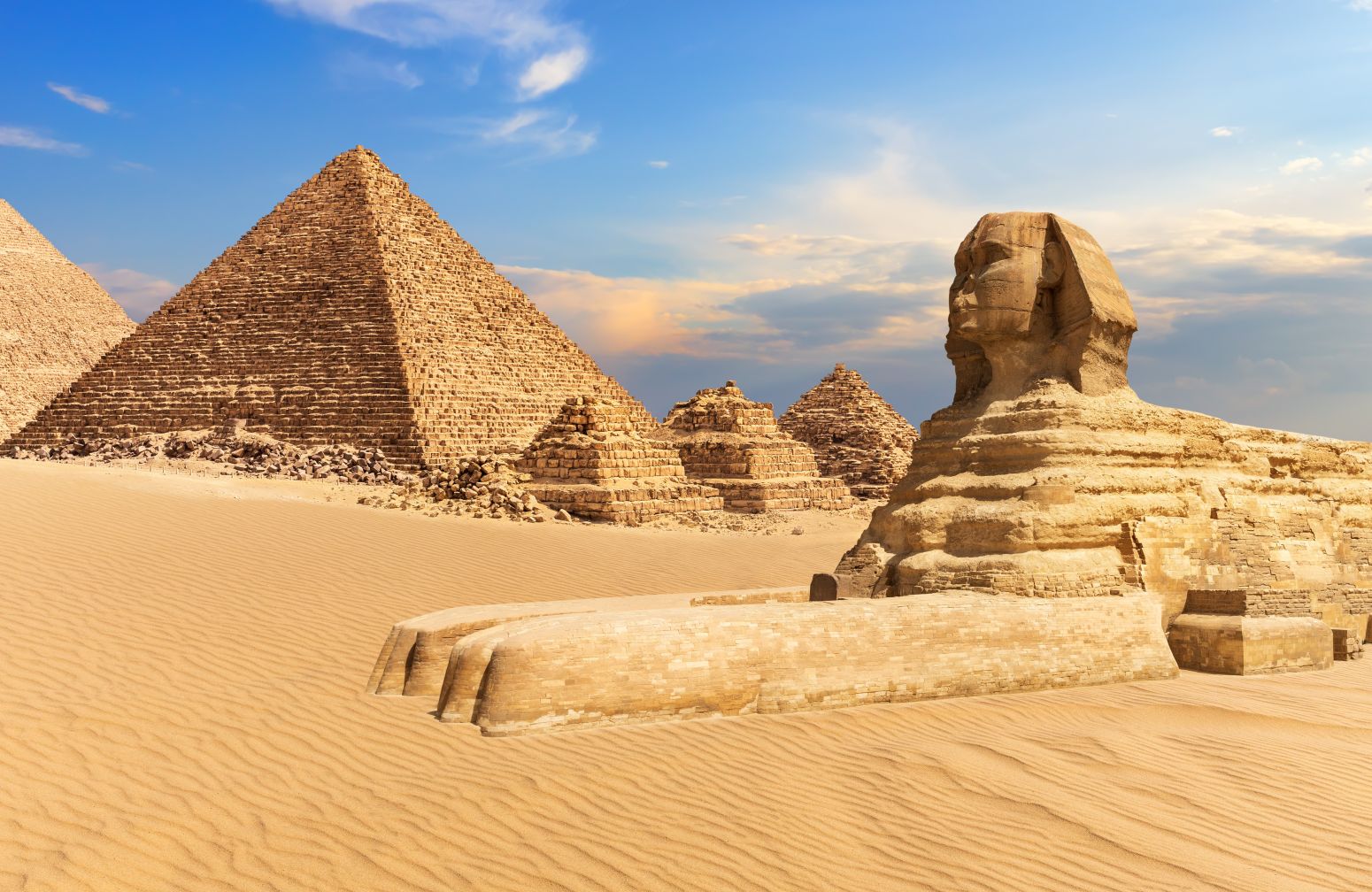 Hoy viviréis uno de esos momentos que todo viajero recuerda para siempre. Visitaremos la legendaria Necrópolis de Guiza, donde se alzan las impresionantes pirámides de Keops, Kefrén y Micerinos junto a la misteriosa Esfinge, guardiana del desierto desde hace más de 4.500 años. Acompañados por nuestro egiptólogo conoceremos los secretos de estas construcciones monumentales y podremos acceder al interior de una de las pirámides. Tras el almuerzo en restaurante, quienes lo deseen podrán realizar una visita opcional a Saqqara y Menfis, dos enclaves fundamentales para comprender la evolución de las pirámides y la historia del antiguo Egipto. Regreso al hotel, cena y alojamiento.